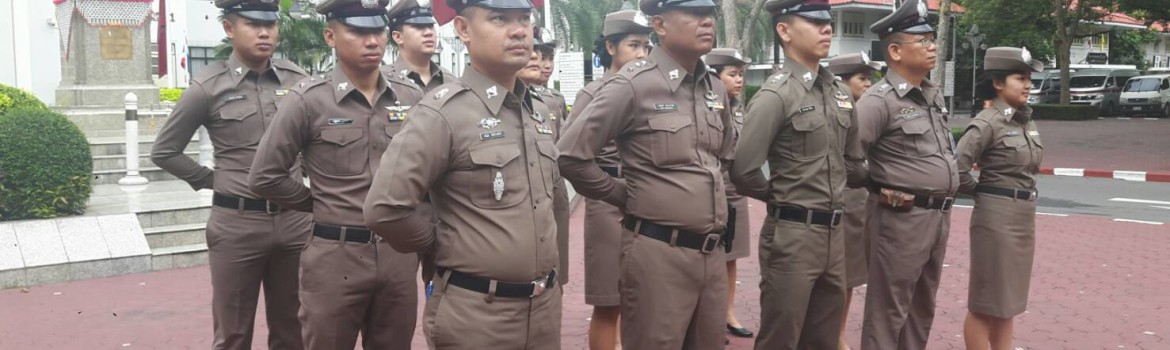 ข้าราชการตำรวจในสังกัด อฎ. และ ฝอ.กมค. เข้าร่วมเคารพธงชาติ ในวันจันทร์ที่ 16 ก.ค. 2561 ณ บริเวณหน้าอาคาร 1 ข้าราชการตำรวจสังกัด อฎ. เข้าแถวเคารพธงชาติ