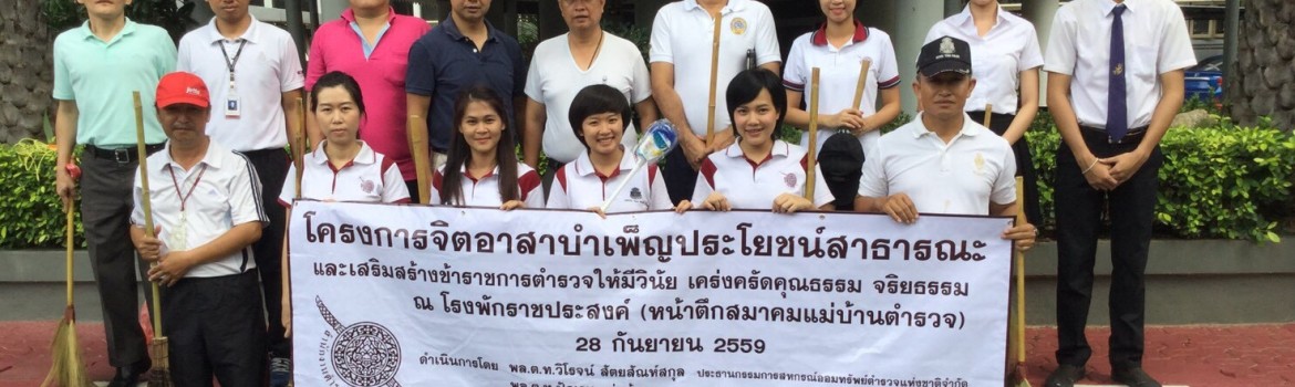 โครงการจิตอาสาบำเพ็ญประโยชน์สาธารณะ และเสริมสร้างข้าราชการตำรวจให้มีวินัย เคร่งครัดคุณธรรม จริยธรรม ณ โรงพักราชประสงค์ (หน้าตึกสมาคมแม่บ้านตำรวจ) 28 กันยายน 2559 โครงการจิตอาสาบำเพ็ญประโยชน์สาธารณะ และเสริมสร้างข้าราชการตำรวจให้มีวินัย เคร่งครัดคุณธรรม จริยธรรม