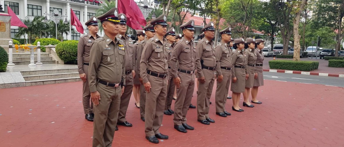 ข้าราชการตำรวจสังกัด อฎ. เข้าแถวเคารพธงชาติ ข้าราชการตำรวจในสังกัด อฎ. และ ฝอ.กมค. เข้าร่วมเคารพธงชาติ ในวันพฤหัสบดีที่ 3 ม.ค. 2562 ณ บริเวณหน้าอาคาร 1
