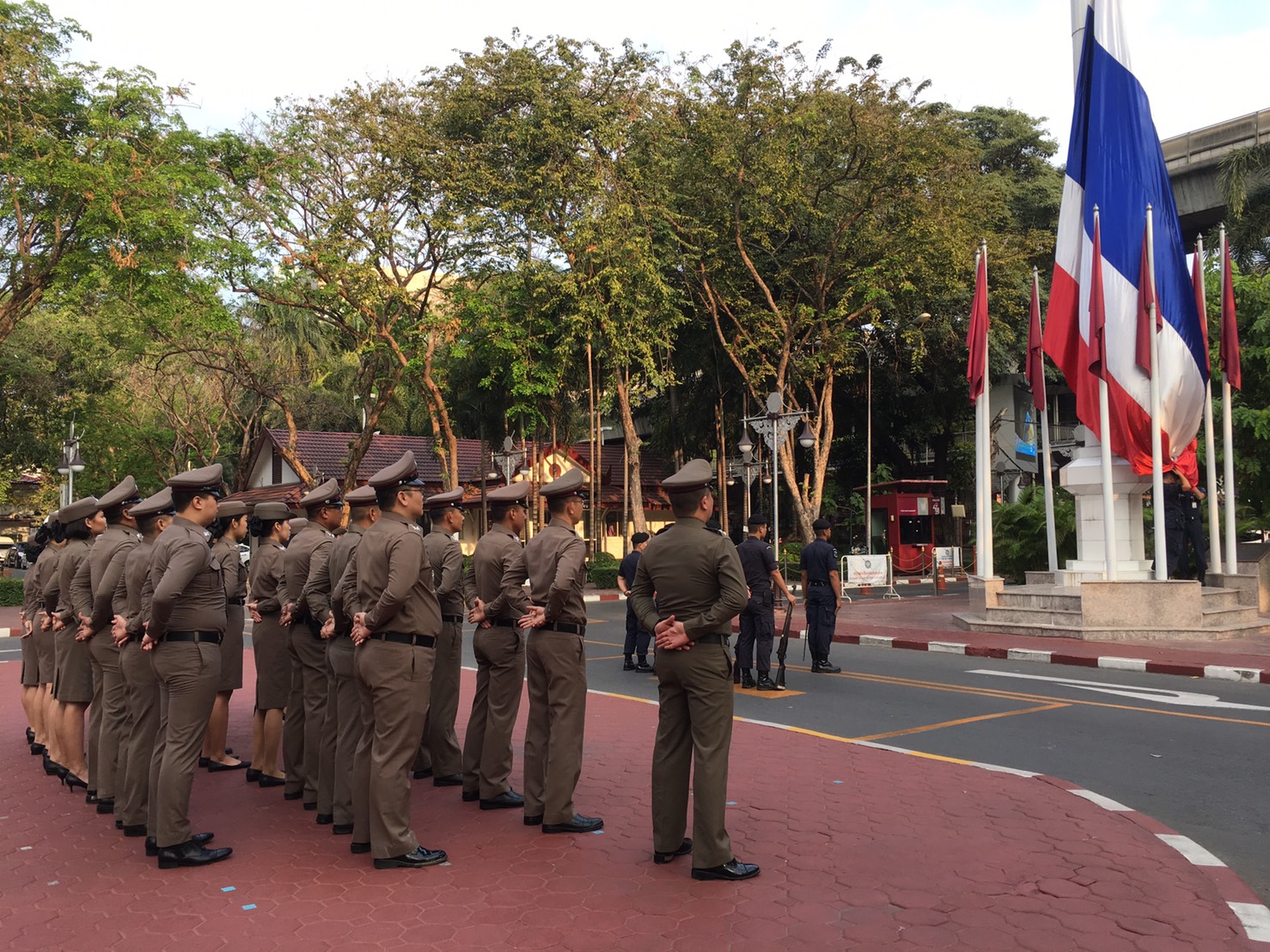 ข้าราชการตำรวจสังกัด อฎ. เข้าแถวเคารพธงชาติ ข้าราชการตำรวจในสังกัด อฎ. และ ฝอ.กมค. เข้าร่วมเคารพธงชาติ ในวันอังคารที่ 26 ก.พ. 2562 ณ บริเวณหน้าอาคาร 1