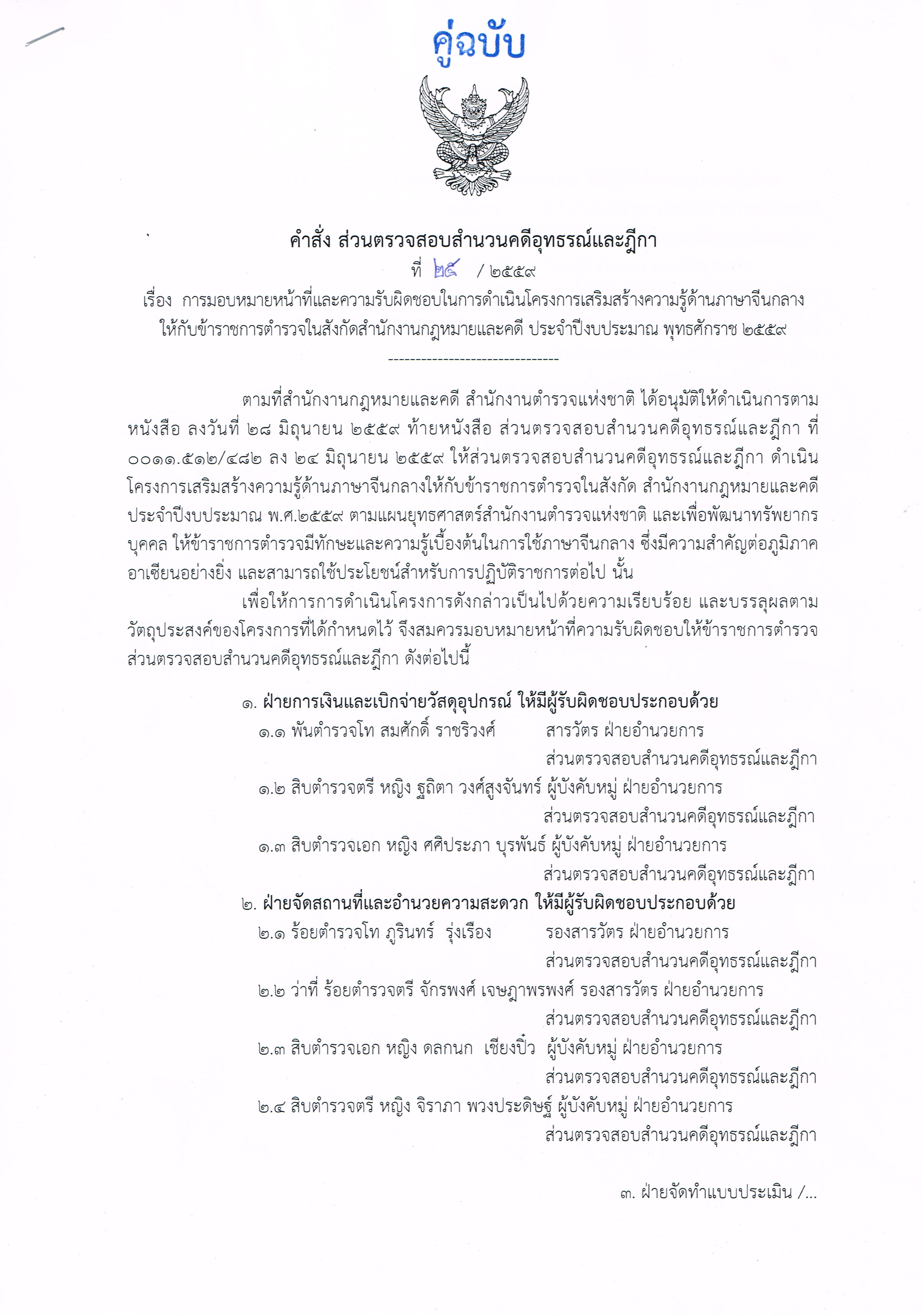 โครงการอบรมให้ความรู้ด้านภาษาจีนกลางของ กมค. โดย อฎ.