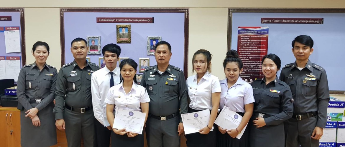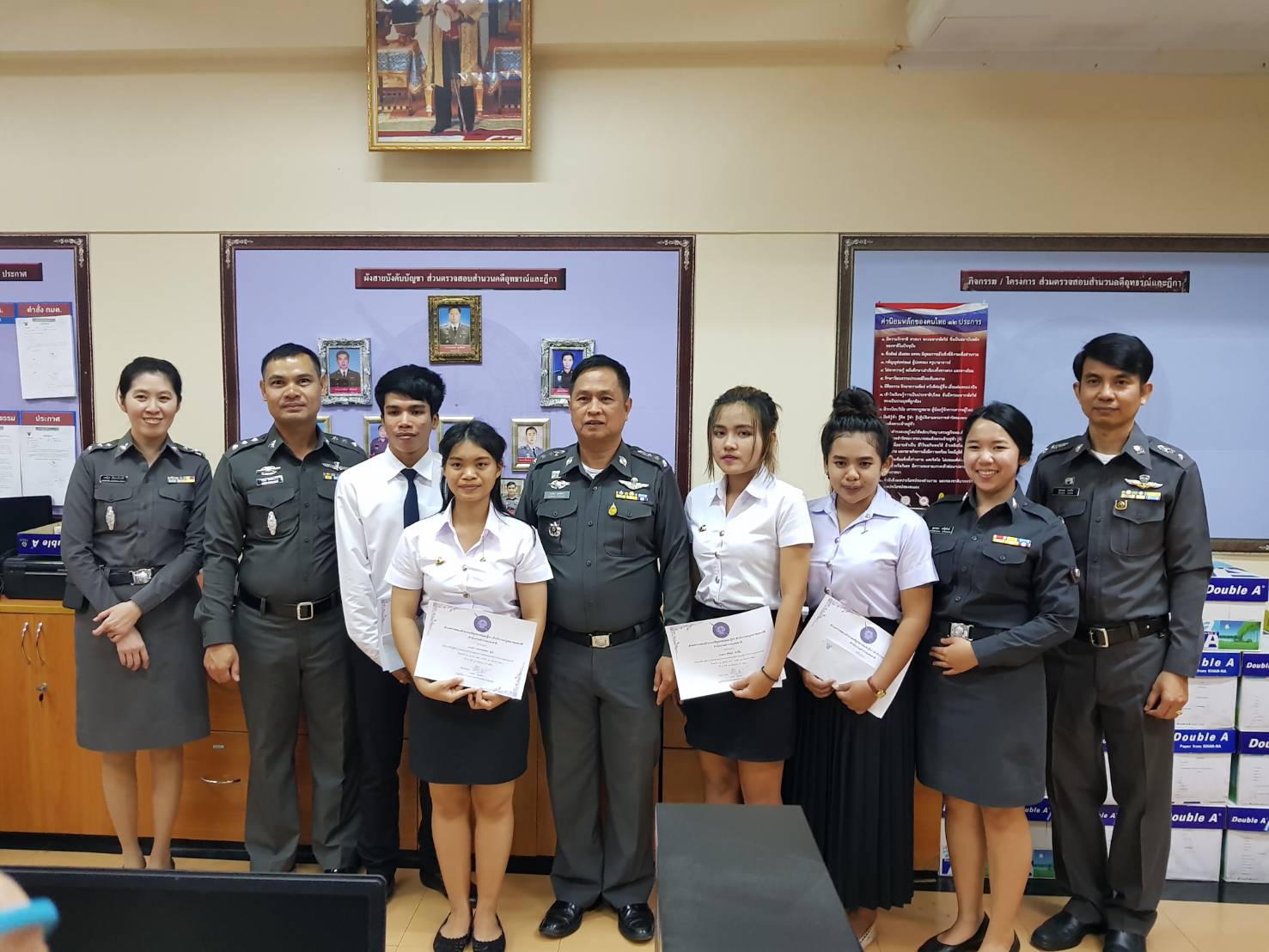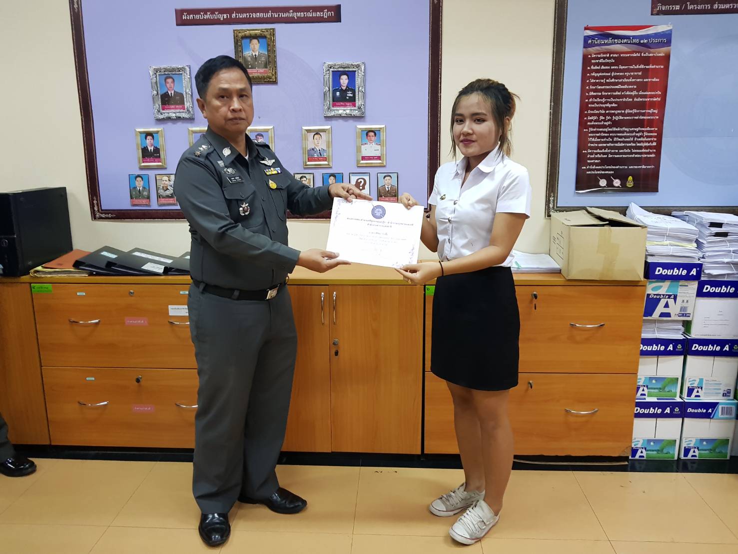 มอบใบประกาศนียบัตรให้กับนักศึกษาฝึกงานจากมหาวิทยาลัยรัตนบัณฑิต วันจันทร์ที่ 12 มิ.ย. 2560 เวลา 13.30 น. พ.ต.อ.นพพร ศุภพัฒน์ รอง ผบก.อฎ. มอบใบประกาศนียบัตรให้กับนักศึกษาฝึกงานจากมหาวิทยาลัยรัตนบัณฑิต ซึ่งเข้าฝึกงาน ณ อฎ. ระหว่างวันที่ 21 เม.ย. – 12 มิ.ย. 2560